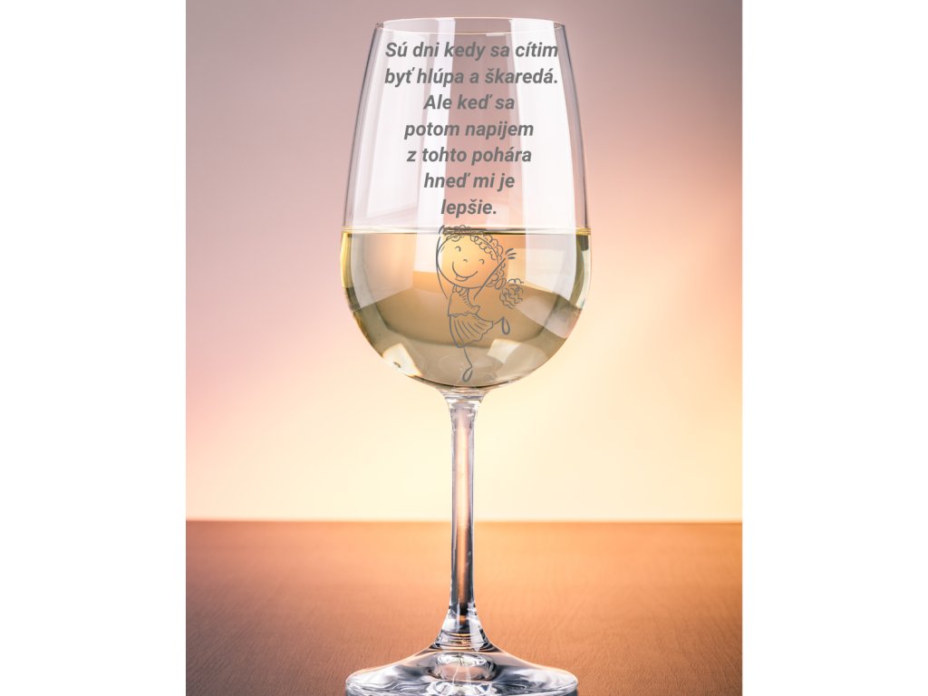 Gravírovaný pohár na víno vhodný pre kamošku na zlepšenie nálady .